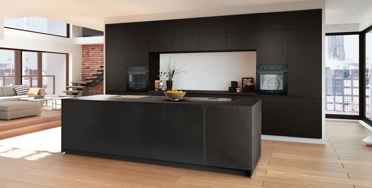 Inklusive 2x Einbaubackofen in Schwarz mit Multifunktion AEG BEE43511AB Energieeffizienzklasse A, Glaskeramik Kochfeld mit Induktion und Kochfeldabzug (Umluft) Bora GPNextE80N, Kühlschrank AEG OSK6I82EF Energieeffizienzklasse E, Geschirrspüler vollintegriert Bosch SBV2HTX08E Energieeffizienzklasse C, Einbauspüle Edelstahl Rodi NewManaus, Wandschränken mit Klappe, XL-Schränken.