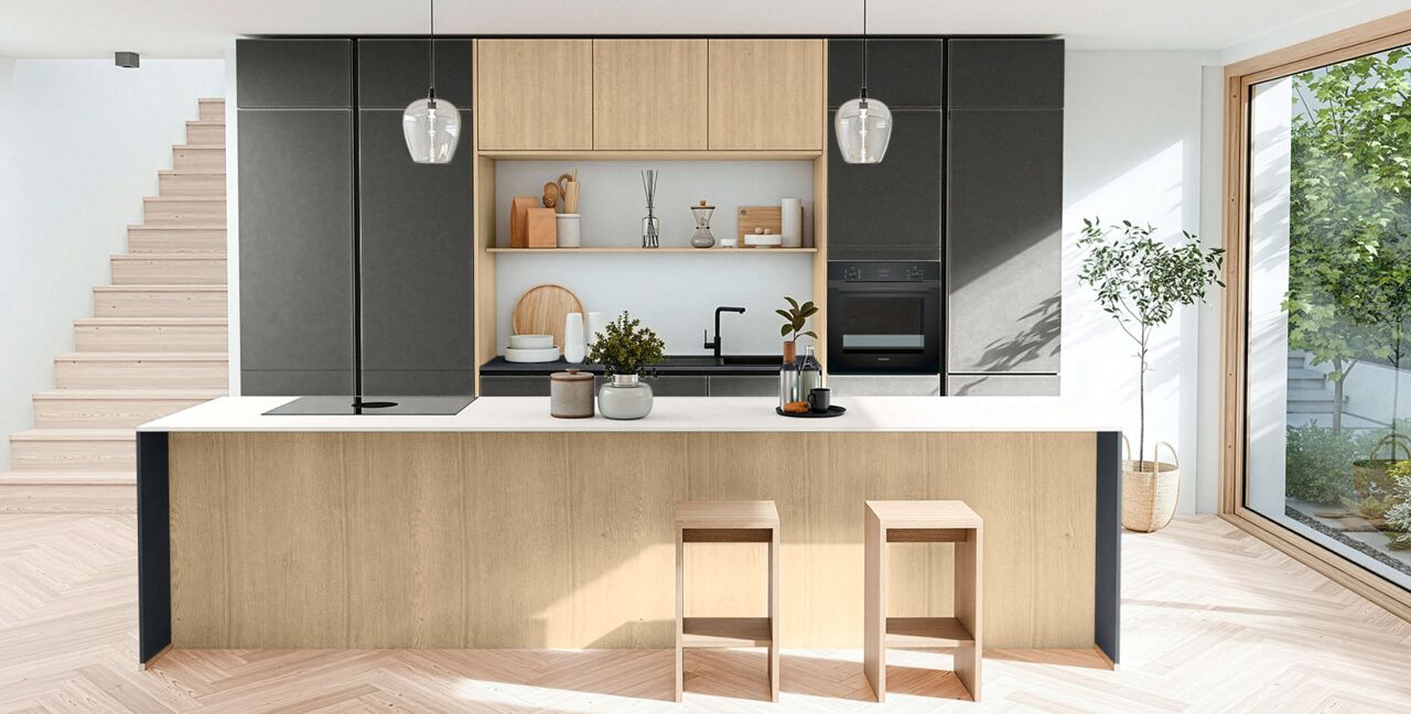 Inklusive Einbaubackofen in Schwarz mit Multifunktion AEG BEE43511AB Energieeffizienzklasse A, Glaskeramik Kochfeld mit Induktion und Kochfeldabzug (Umluft) Bora GPNextE80N, Kühlschrank AEG OSK6I82EF Energieeffizienzklasse E, Geschirrspüler vollintegriert Bosch SBV2HTX08E Energieeffizienzklasse C, Einbau-Designspüle Elleci Logik 300XL-Schränken, LINE N, Esstheke, Wandbord.