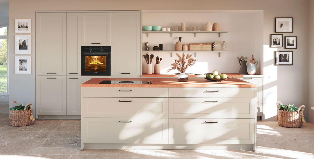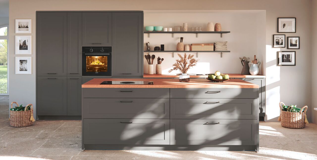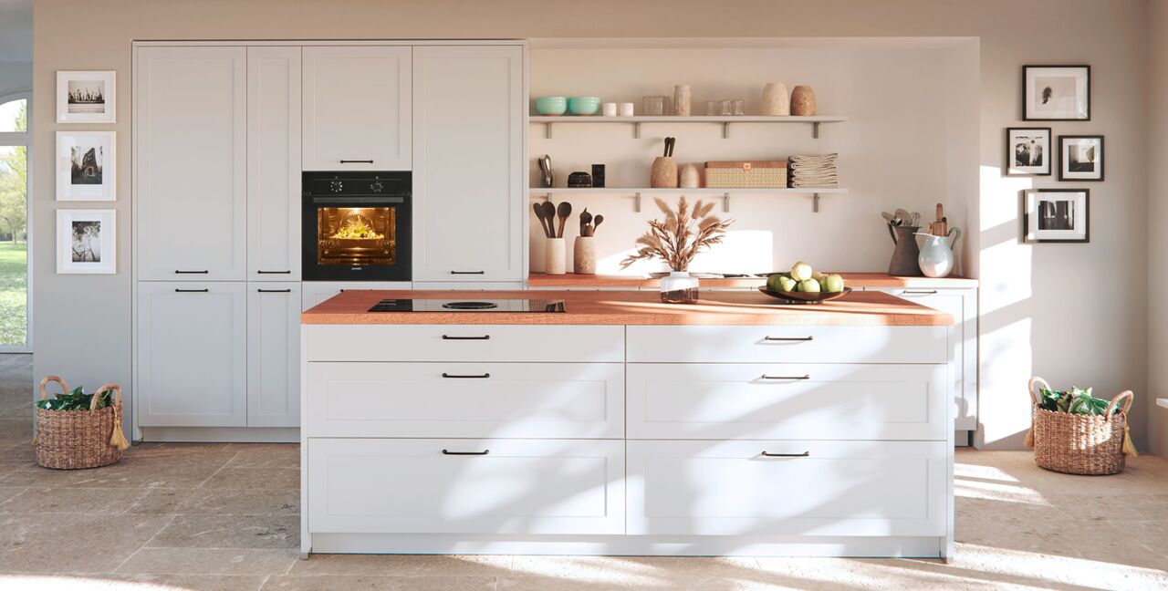 Inklusive Einbaubackofen schwarz Junker JF1300061 Energieeffizienzklasse A, Glaskeramik Kochfeld mit Induktion und Kochfeldabzug (Umluft) Bora GPNextE80N, Kühlschrank Laurus LKG88E Energieeffizienzklasse E, Geschirrspüler vollintegriert Bosch SMV41D10EU Energieeffizienzklasse E, Einbauspüle Edelstahl Rodi Okio Line 85 Deep, XL-Schränken, Unterschränken mit Frontauszügen, Wandborden, Geschirrschränken.