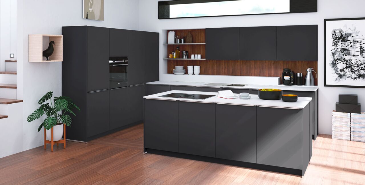 Inklusive Einbaubackofen in Schwarz mit Multifunktion AEG BEE43511AB Energieeffizienzklasse A, Glaskeramik Kochfeld mit Induktion und Kochfeldabzug (Umluft) AEG XCD6847AS, Kühlschrank AEG OSK6I82EF Energieeffizienzklasse E, Geschirrspüler vollintegriert Bosch SMV41D10EU Energieeffizienzklasse E, Einbauspüle Edelstahl Rodi Okio Line 85 Deep, Wandborden, XL-Schränken.
