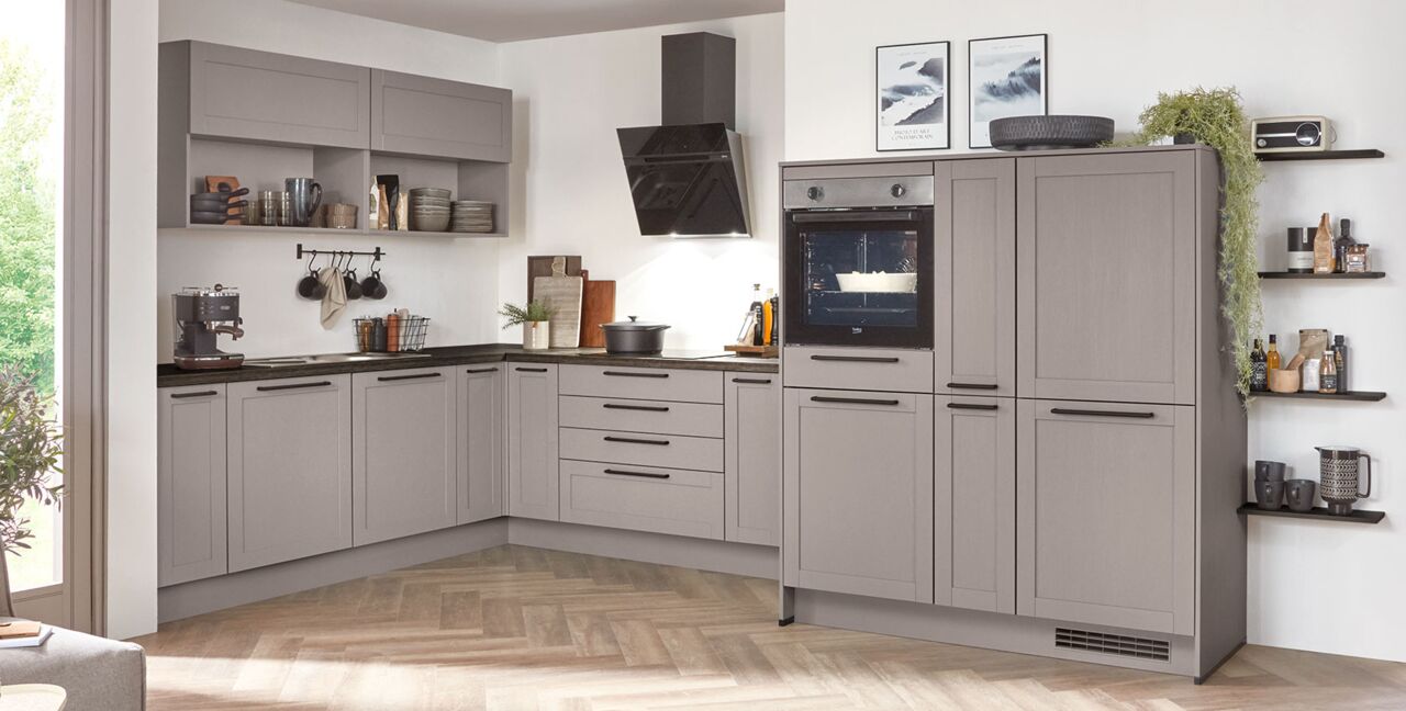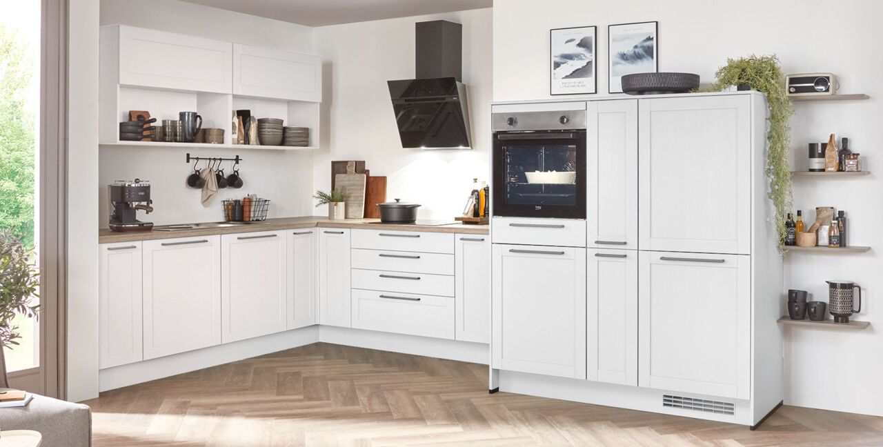 Inklusive Einbaubackofen Edelstahl Beko BBIE110N2X Energieeffizienzklasse A, Glaskeramik Kochfeld Beko EB9741XHL, Designesse Schwarzglas Elica STRIPE60BK Energieeffizienzklasse B, Kühlschrank Beko BSSA210K4SN Energieeffizienzklasse E, Geschirrspüler vollintegriert Bosch SMV41D10EU Energieeffizienzklasse E, Einbauspüle Edelstahl Rodi Okio Line 85 Deep, Unterschrank mit Frontauszügen, Wandschrankregalen.