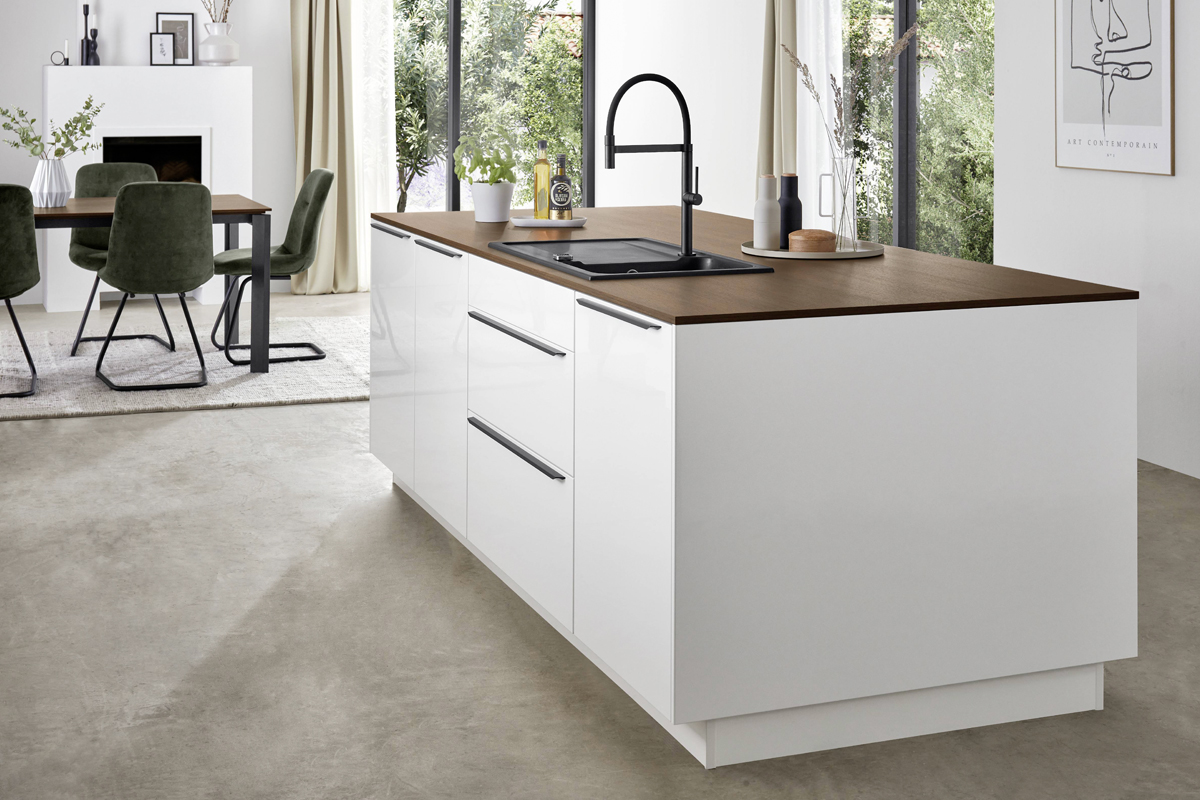 Inklusive Einbaubackofen AEG EB32B Energieeffizienzklasse A, Glaskeramik Kochfeld mit Induktion und Kochfeldabzug (Umluft) Bora GPNextE80N, Kühlschrank AEG OSK6I82EF Energieeffizienzklasse E, Geschirrspüler vollintegriert Bosch SMV41D10EU Energieeffizienzklasse E, Einbau-Designspüle Franke Sirius SID610, LINE N, Hochschrankregal, Essplatz.