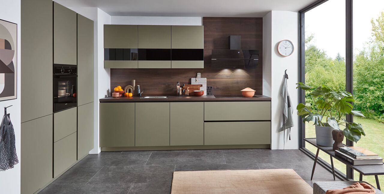 Inklusive Einbaubackofen schwarz Junker JF1300061 Energieeffizienzklasse A, Glaskeramik Kochfeld Junker JR36DT54, Designesse Edelstahl / Schwarzglas Elica WISE90BK Energieeffizienzklasse B, Kühlschrank Laurus LKG122E Energieeffizienzklasse E, Geschirrspüler vollintegriert Bosch SMV41D10EU Energieeffizienzklasse E, Einbauspüle Edelstahl Rodi NewManaus, XL-Schränken, Unterschrank mit Großraumauszügen, Wandschränken mit Segmentglastüren, LINE N.