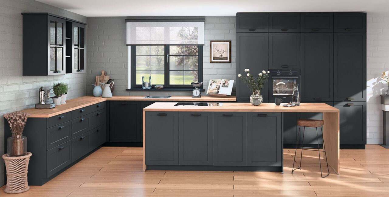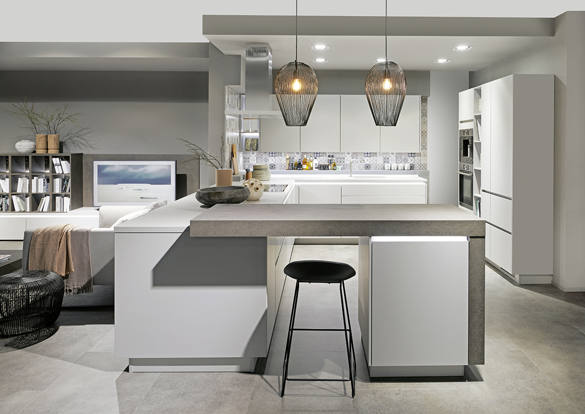 Inklusive Einbaubackofen schwarz Miele H2466B Active Energieeffizienzklasse A+, Glaskeramik Kochfeld mit Induktion und Kochfeldabzug (Umluft) Bora GPNextE80N, Kühlschrank Miele K7115E Energieeffizienzklasse E, Geschirrspüler vollintegriert Bosch SBV2HTX08E Energieeffizienzklasse C, Einbau-Designspüle Elleci Logik 300, Unterschränken mit Frontauszügen, Wandschränken mit Glassprossentür, Wandschrankregal, Essplatz, XL-Schränken.