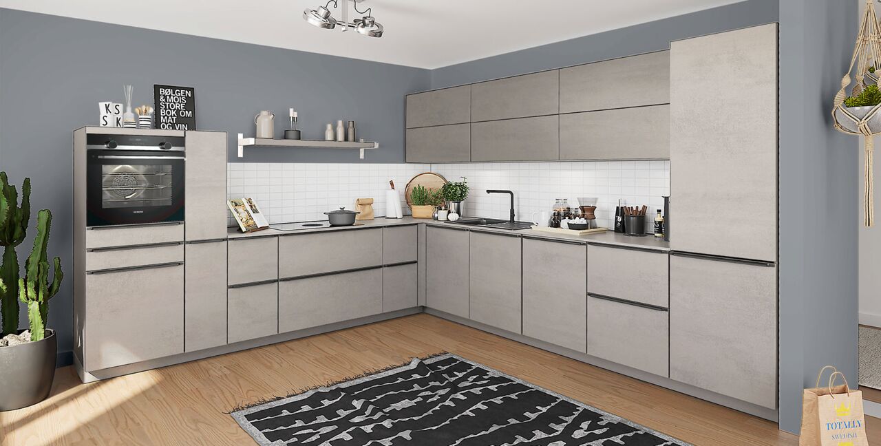 Inklusive Einbaubackofen schwarz Bosch HBA272BB3 Energieeffizienzklasse A+, Glaskeramik Kochfeld mit Induktion und Kochfeldabzug (Umluft) Bora GPNextE80N, Kühlschrank Bosch KIR21NSE0 Energieeffizienzklasse E, Geschirrspüler vollintegriert Bosch SBV2HTX08E Energieeffizienzklasse C, Einbau-Designspüle Elleci Logik 300, XL-Schränken, Unterschränken mit Großraumauszügen, Wandschränken mit Falt-Lifttür, Apothekerschrank.