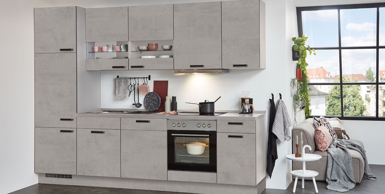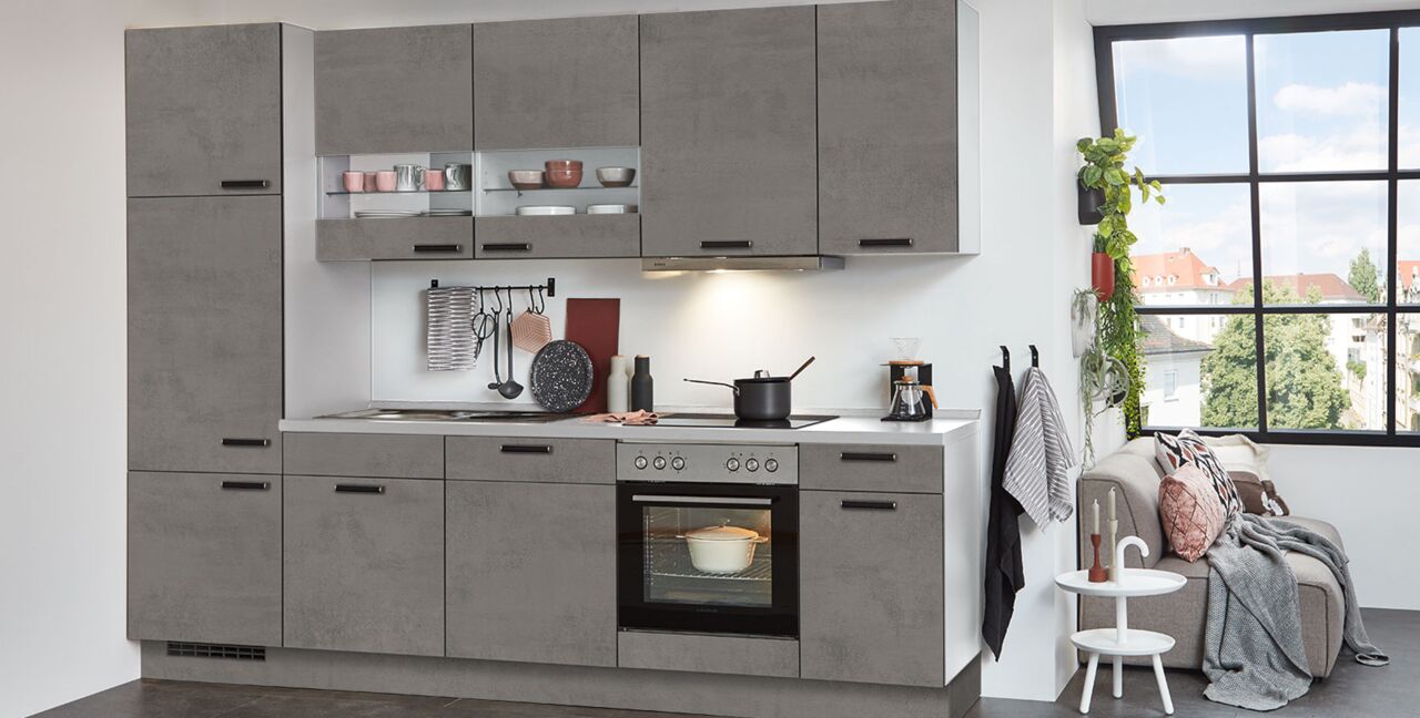 Inklusive Einbauherd Edelstahl Laurus LEH5 Energieeffizienzklasse A, Glaskeramik Kochfeld Laurus LCF600, Flachschirmhaube Elica ELITE 14 60-D Energieeffizienzklasse D, Kühlschrank Laurus LKS88E Energieeffizienzklasse E, Einbauspüle Edelstahl Rodi Okio Line 85 Deep, Wandschrank mit Segmentglastüren.