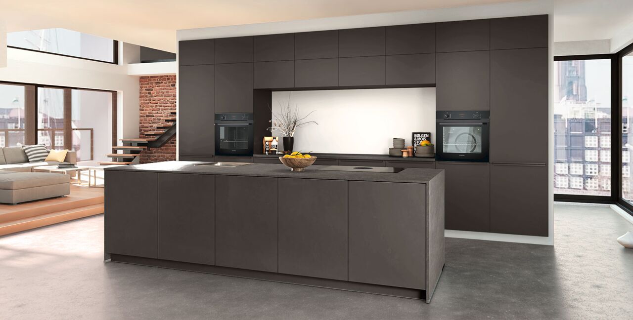 Inklusive 2x Einbaubackofen in Schwarz mit Multifunktion AEG BEE43511AB Energieeffizienzklasse A, Glaskeramik Kochfeld mit Induktion und Kochfeldabzug (Umluft) Bora GPNextE80N, Kühlschrank AEG OSK6I82EF Energieeffizienzklasse E, Geschirrspüler vollintegriert Bosch SBV2HTX08E Energieeffizienzklasse C, Einbauspüle Edelstahl Rodi NewManaus, Wandschränken mit Klappe, XL-Schränken.