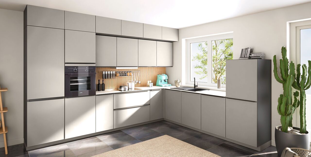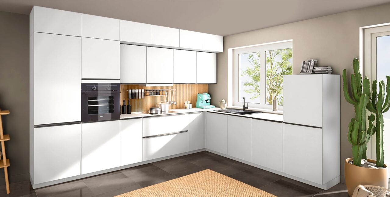 Inklusive Einbaubackofen schwarz Junker JF1300061 Energieeffizienzklasse A, Glaskeramik Kochfeld Laurus LCA600, Flachschirmhaube Elica ELITE 14 60-D Energieeffizienzklasse D, Kühlschrank Laurus LKG88E Energieeffizienzklasse E, Geschirrspüler vollintegriert Bosch SBV2HTX08E Energieeffizienzklasse C, Einbau-Designspüle Elleci Life 410, XL-Schränken, Unterschrank mit Großraumauszügen.