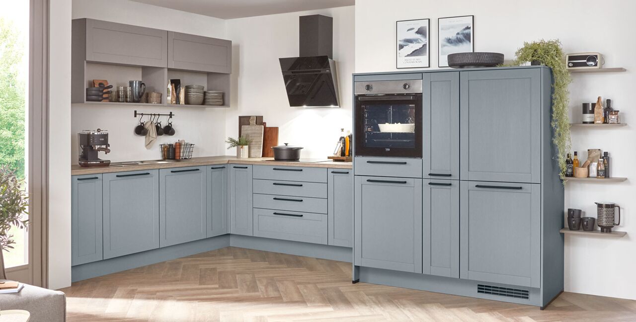 Inklusive Einbaubackofen Edelstahl Beko BBIE110N2X Energieeffizienzklasse A, Glaskeramik Kochfeld Beko EB9741XHL, Designesse Schwarzglas Elica STRIPE60BK Energieeffizienzklasse B, Kühlschrank Beko BSSA210K4SN Energieeffizienzklasse E, Geschirrspüler vollintegriert Bosch SMV41D10EU Energieeffizienzklasse E, Einbauspüle Edelstahl Rodi Okio Line 85 Deep, Unterschrank mit Frontauszügen, Wandschrankregalen.