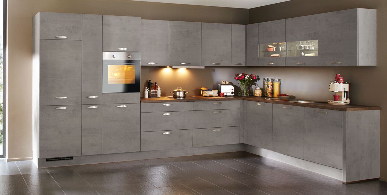 Inklusive Einbaubackofen Edelstahl Laurus LEB5 Energieeffizienzklasse A, Glaskeramik Kochfeld Laurus LCA600, Flachschirmhaube Elica ELITE 14 60-D Energieeffizienzklasse D, Kühlschrank Laurus LKG88E Energieeffizienzklasse E, Geschirrspüler vollintegriert Bosch SMV41D10EU Energieeffizienzklasse E, Einbauspüle Edelstahl Rodi Okio Line 85 Deep, Unterschränken mit Frontauszügen, Wandschränken mit Segmentglastür, Geschirrschrank.