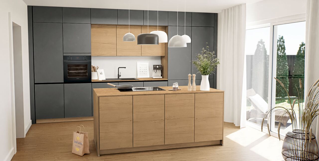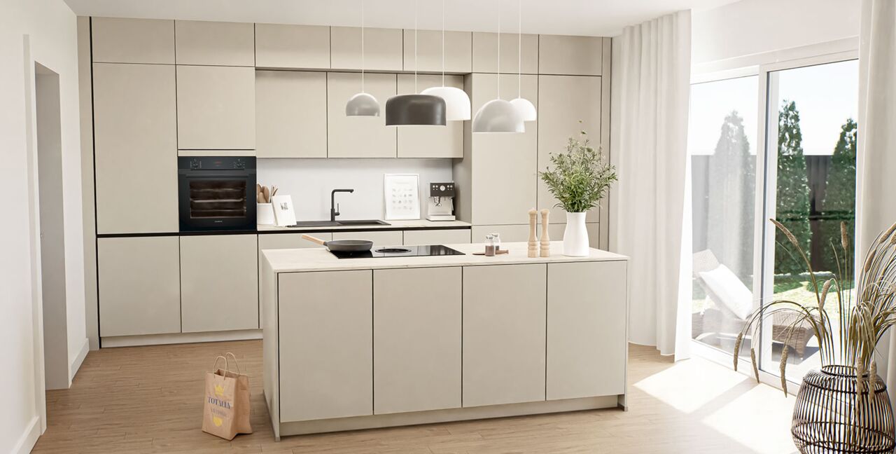 Inklusive Einbaubackofen schwarz Bosch HBA3340B0 Energieeffizienzklasse A, Glaskeramik Kochfeld mit Induktion und Kochfeldabzug (Umluft) Bora GPNextE80N, Kühlschrank Bosch KIR21NSE0 Energieeffizienzklasse E, Geschirrspüler vollintegriert Bosch SMV41D10EU Energieeffizienzklasse E, Einbau-Designspüle Elleci Logik 300, XL-Schränken, Wandschränken mit Klappe.