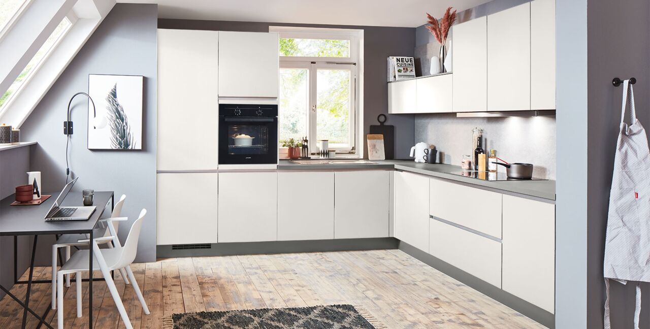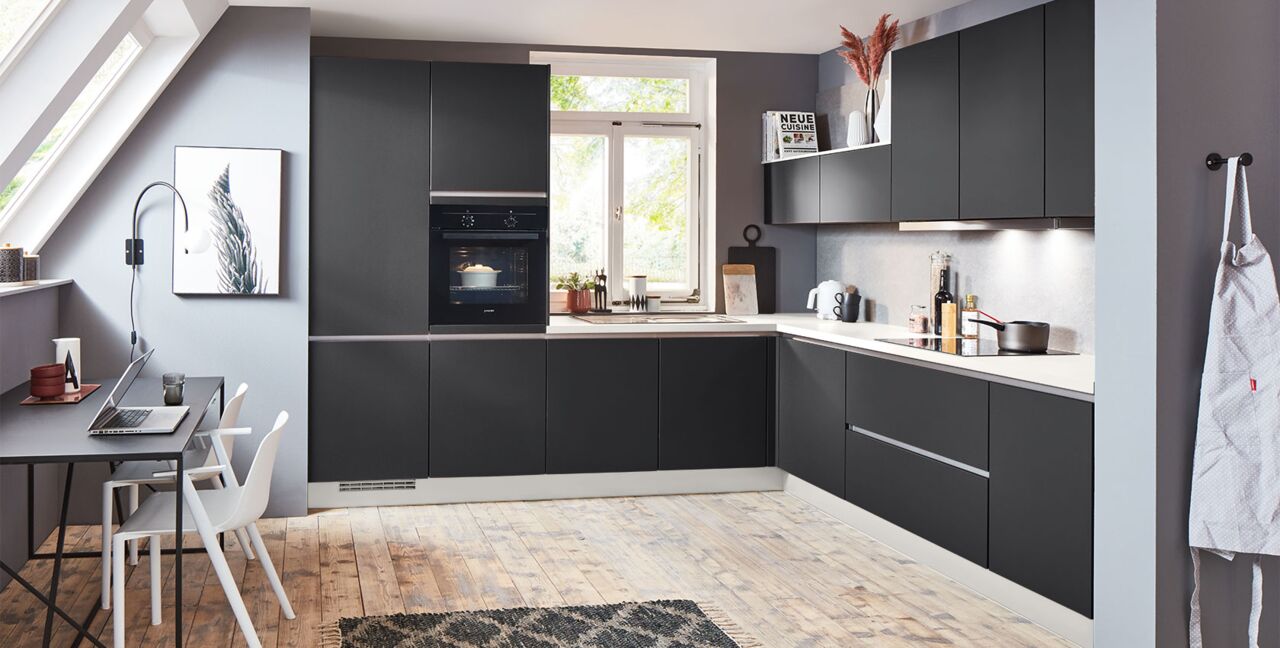 Inklusive Einbaubackofen schwarz Junker JF1300061 Energieeffizienzklasse A, Glaskeramik Kochfeld Junker JR36DT54, Flachschirmhaube Junker JD39AE51 Energieeffizienzklasse A, Kühlschrank mit **** Gefrierfach Progress PK0855 Energieeffizienzklasse E, Geschirrspüler vollintegriert Bosch SMV41D10EU Energieeffizienzklasse E, Einbauspüle Edelstahl Rodi Okio Line 85 Deep, Unterschrank mit Großraumauszügen, Wandschrank mit Klappe.