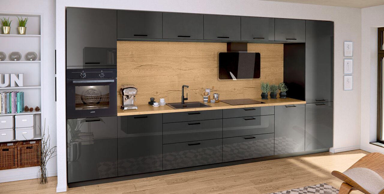 Inklusive Einbaubackofen schwarz Junker JF1300061 Energieeffizienzklasse A, Glaskeramik Kochfeld Junker JR36DT54, Dunstesse Edelstahl / Glas Faber GLAM-FIT BK80 Energieeffizienzklasse A, Kühlschrank mit **** Gefrierfach Progress PK0855 Energieeffizienzklasse E, Geschirrspüler vollintegriert Bosch SBV2HTX08E Energieeffizienzklasse C, Einbau-Designspüle Elleci Logik 300, XL-Schränken, Unterschränken mit Frontauszügen.