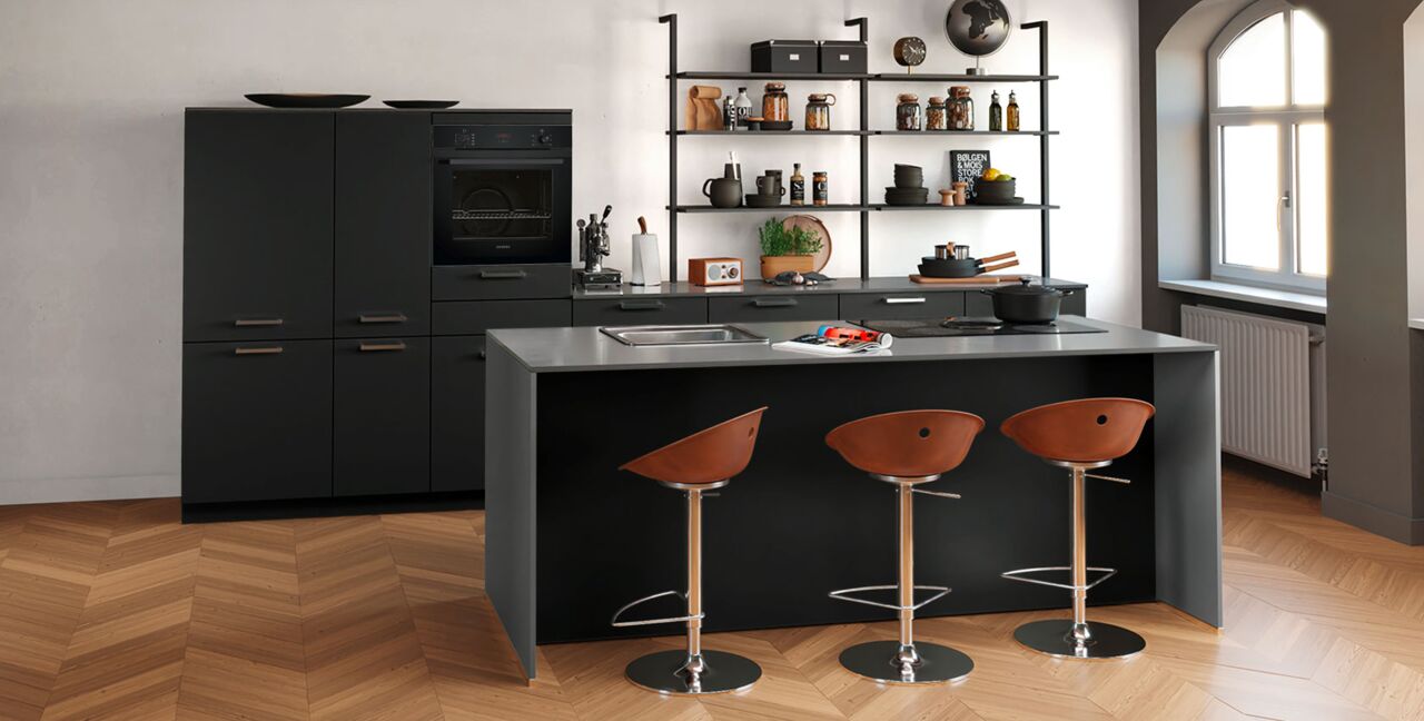 Inklusive Einbaubackofen schwarz Bosch HBA272BB3 Energieeffizienzklasse A+, Glaskeramik Kochfeld mit Induktion und Kochfeldabzug (Umluft) Bora GPNextE80N, Kühlschrank Laurus LKG88E Energieeffizienzklasse E, Geschirrspüler vollintegriert Bosch SBV2HTX08E Energieeffizienzklasse C, Einbauspüle Edelstahl Rodi NewManaus, Geschirrschrank, Stollenregalsystem, Esstheke, XL-Schränken.