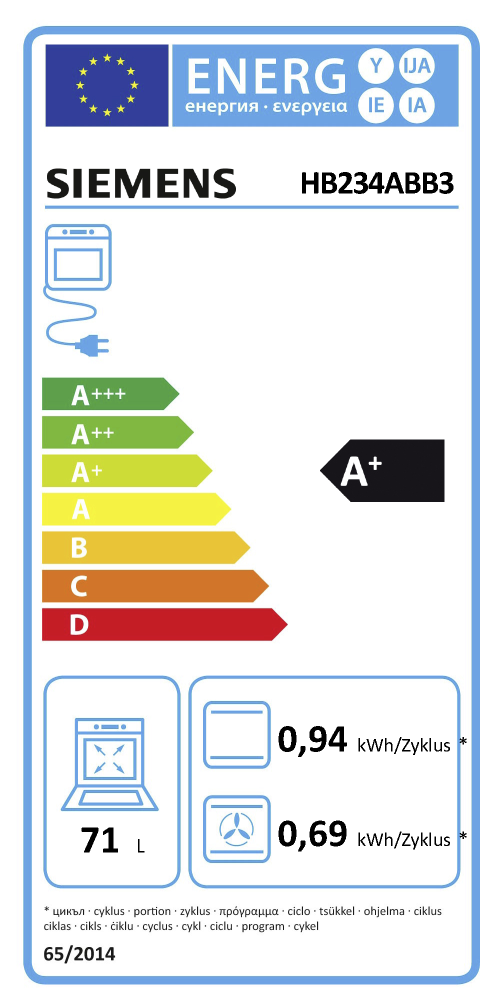 Energieeffizienzklassen und Spektren: Backöfen, Herde und Dunstabzüge A+++ - D. Geschirrspüler und Kühl-/Gefrierschränke A - G.