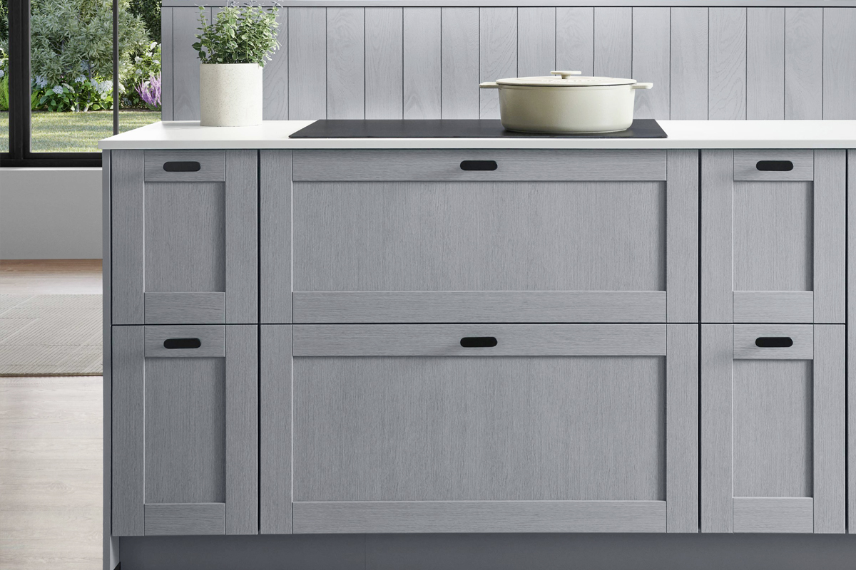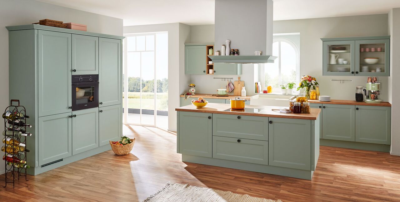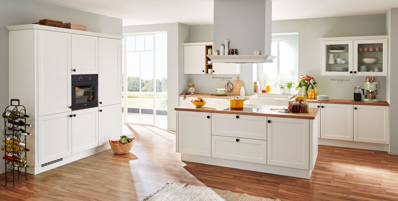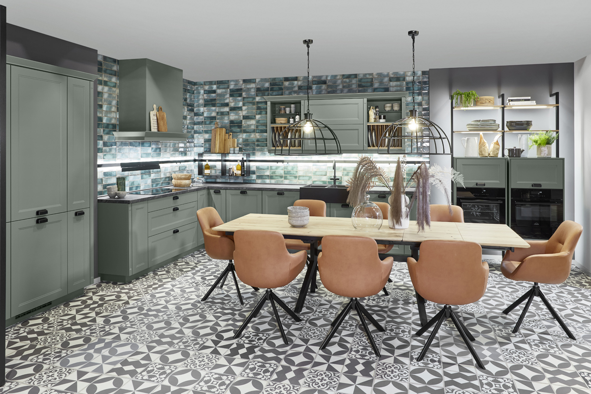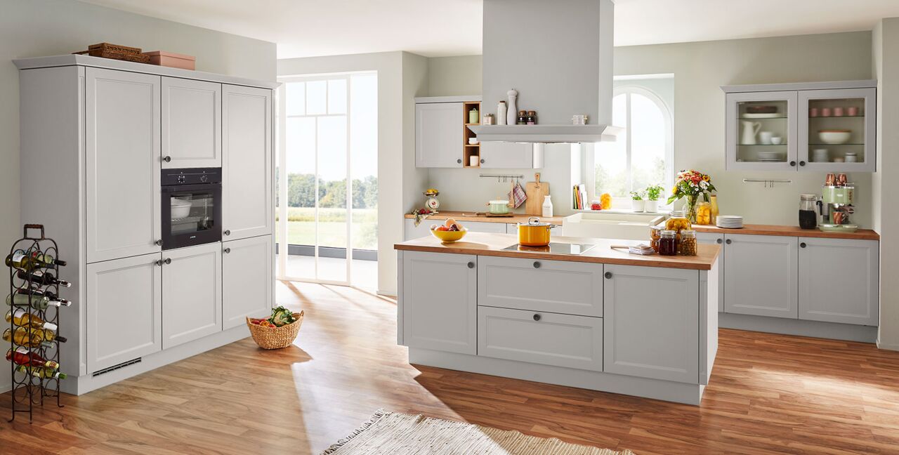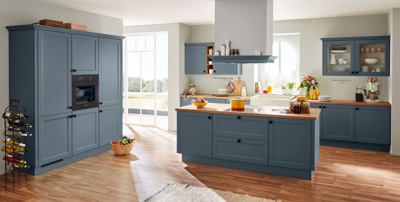 Inklusive Einbaubackofen schwarz Miele H2466B Active Energieeffizienzklasse A+, Glaskeramik Kochfeld Miele KM6520FR, Integrierte Dunstesse Airforce CompactIXA83 Energieeffizienzklasse C, Kühlschrank Miele K7115E Energieeffizienzklasse E, Geschirrspüler vollintegriert Bosch SMV41D10EU Energieeffizienzklasse E, Einbau-Designspüle Schock Grando M-100, Unterschrank mit Großraumauszügen, Wandschränken mit Glasrahmentür, Wandschrankregal.