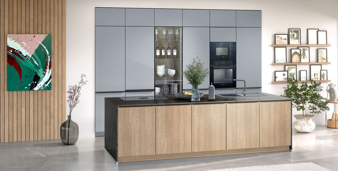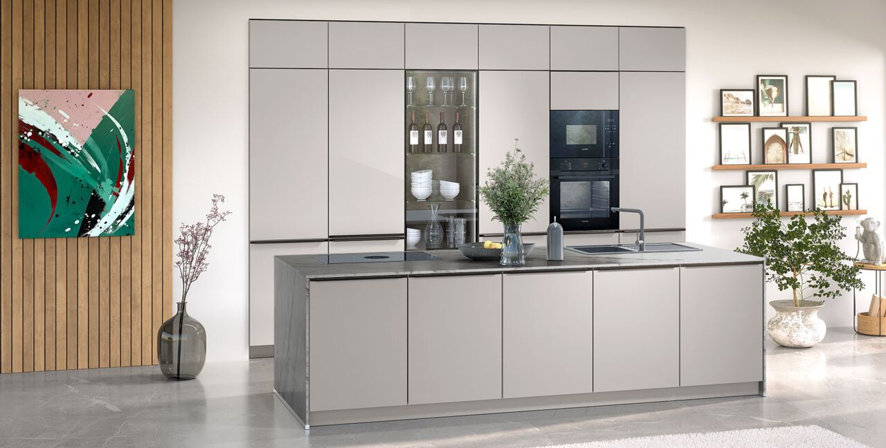 Inklusive Einbaubackofen schwarz Bosch HBA3340B0 Energieeffizienzklasse A, Glaskeramik Kochfeld Bosch PKE645BA2E, Kühlschrank Bosch KIR21NSE0 Energieeffizienzklasse E, Mikrowelle Bosch BFL524MS0, Geschirrspüler vollintegriert Bosch SMV41D10EU Energieeffizienzklasse E, Einbau-Designspüle Elleci Logik 300, XL-Schränken, Glas-Hochschrank Air.