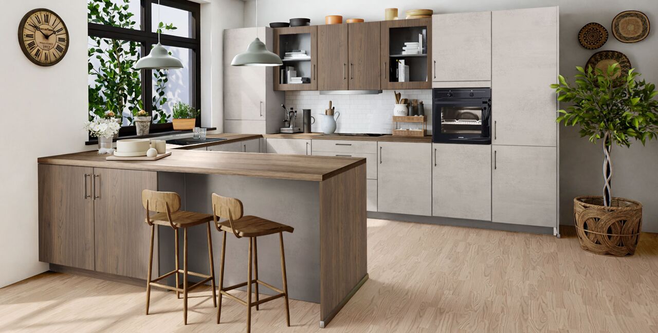 Inklusive Einbaubackofen Bosch HBA234BB3 Energieeffizienzklasse A+, Glaskeramik Kochfeld Bosch PKE645BA2E, Flachschirmhaube Elica ELITE 14 60-D Energieeffizienzklasse D, Kühlschrank Bosch KIR21NSE0 Energieeffizienzklasse E, Einbau-Designspüle Elleci Logik 300XL-Schränken, Unterschrank mit Großraumauszügen, Wandschränken mit Glassprossentüren, Esstheke.