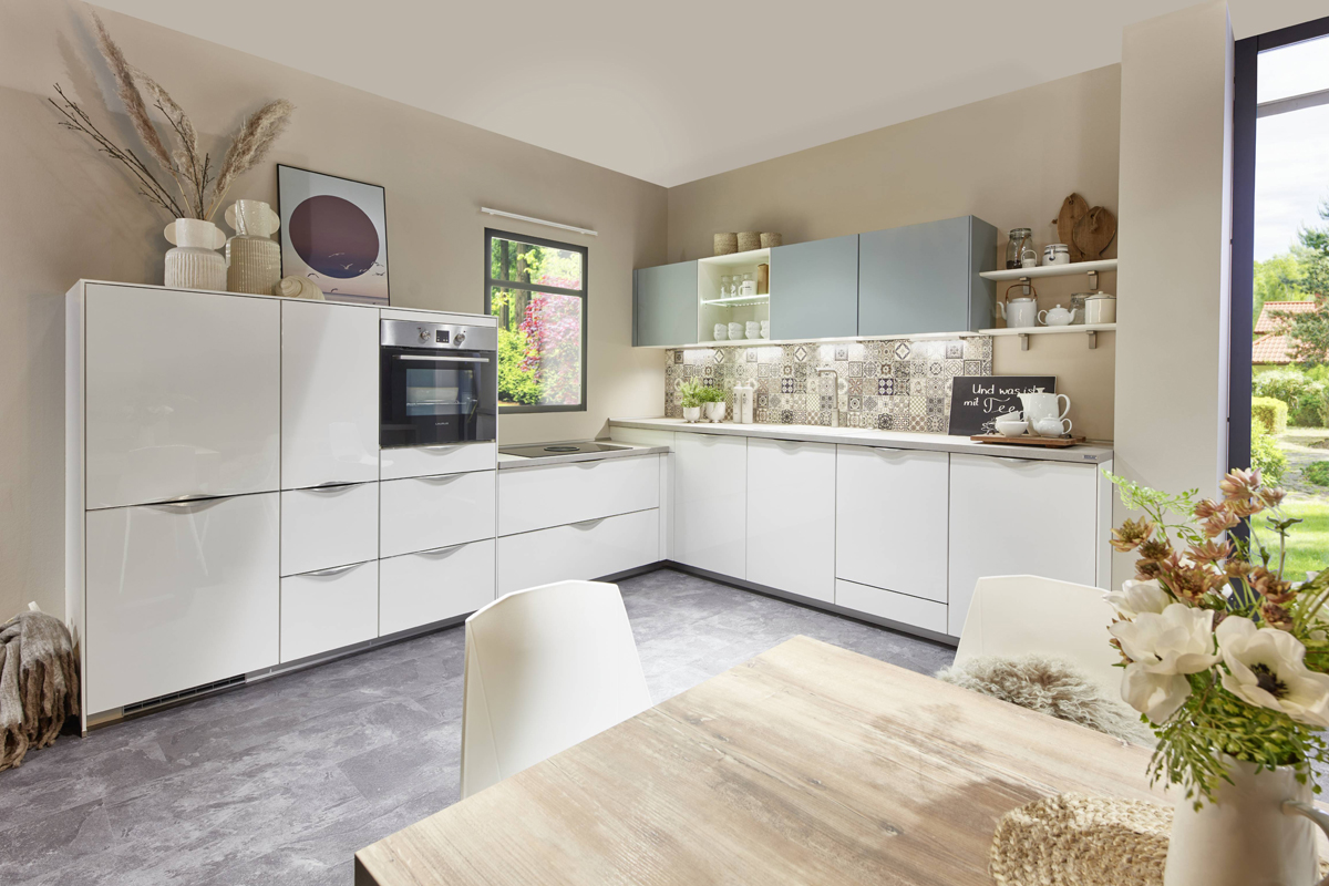 Inklusive Einbaubackofen in Schwarz mit Multifunktion AEG BEE43511AB Energieeffizienzklasse A, Glaskeramik Kochfeld mit Induktion und Kochfeldabzug (Umluft) Bora GPNextE80N, Kühlschrank AEG EKS123E Energieeffizienzklasse E, Geschirrspüler vollintegriert Bosch SMV41D10EU Energieeffizienzklasse E, Einbau-Designspüle Elleci Logik 300, XL-Schränken, Unterschränken mit Großraumauszügen, Wandschränken mit Falt-Lifttür, Apothekerschrank.