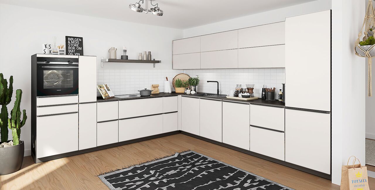 Inklusive Einbaubackofen schwarz Bosch HBA272BB3 Energieeffizienzklasse A+, Glaskeramik Kochfeld mit Induktion und Kochfeldabzug (Umluft) Bora GPNextE80N, Kühlschrank Bosch KIR21NSE0 Energieeffizienzklasse E, Geschirrspüler vollintegriert Bosch SBV2HTX08E Energieeffizienzklasse C, Einbau-Designspüle Elleci Logik 300, XL-Schränken, Unterschränken mit Großraumauszügen, Wandschränken mit Falt-Lifttür, Apothekerschrank.